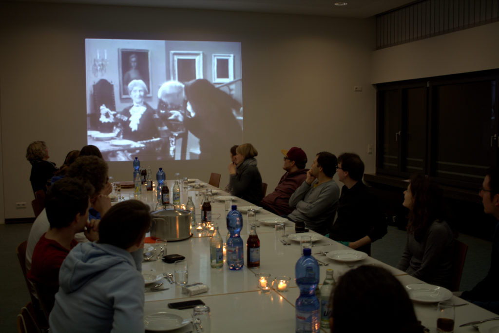 Für die dritte Auflage des Karusselldinners mit den Clubiaten, dem ehemaligen VIP-Club und dem ClubPlus vor rund einem gab es diesemal eine Besonderheit: Jeder Gang, den jeweils ein Club vorbereitete, sollte einem Film entnommen sein und ein passende Ausschnitt wurde vor dem Auftischen des Essen jeweils gezeigt. So war die Spannung groß, als die drei Clubs gegen 21 Uhr alle wieder im Gemeindehaus ankamen, um den ersten Gang, die Vorspeise zu starten. Der ClubPlus hatte sich den Flimklassiker „Dinner for one“ vorgenommen und kredenzten eine Mulligatawny-Suppe. Der VIP-Club hatte den Hauptgang übernommen, der aus dem dafür bestens geeigneten Film „Ratatouille“ kam, dessen Titel stilecht serviert wurde. Den Schluss machten die Clubiaten mit einer Pfannenkuchentorte aus Peterson und Findus. Einen schönen Abschluss fand der Abend mit einer Andacht von Jugendreferent Matthias Kunz, der uns an diesem Abend besuchte. Vielen Dank Felix fürs Organisieren!