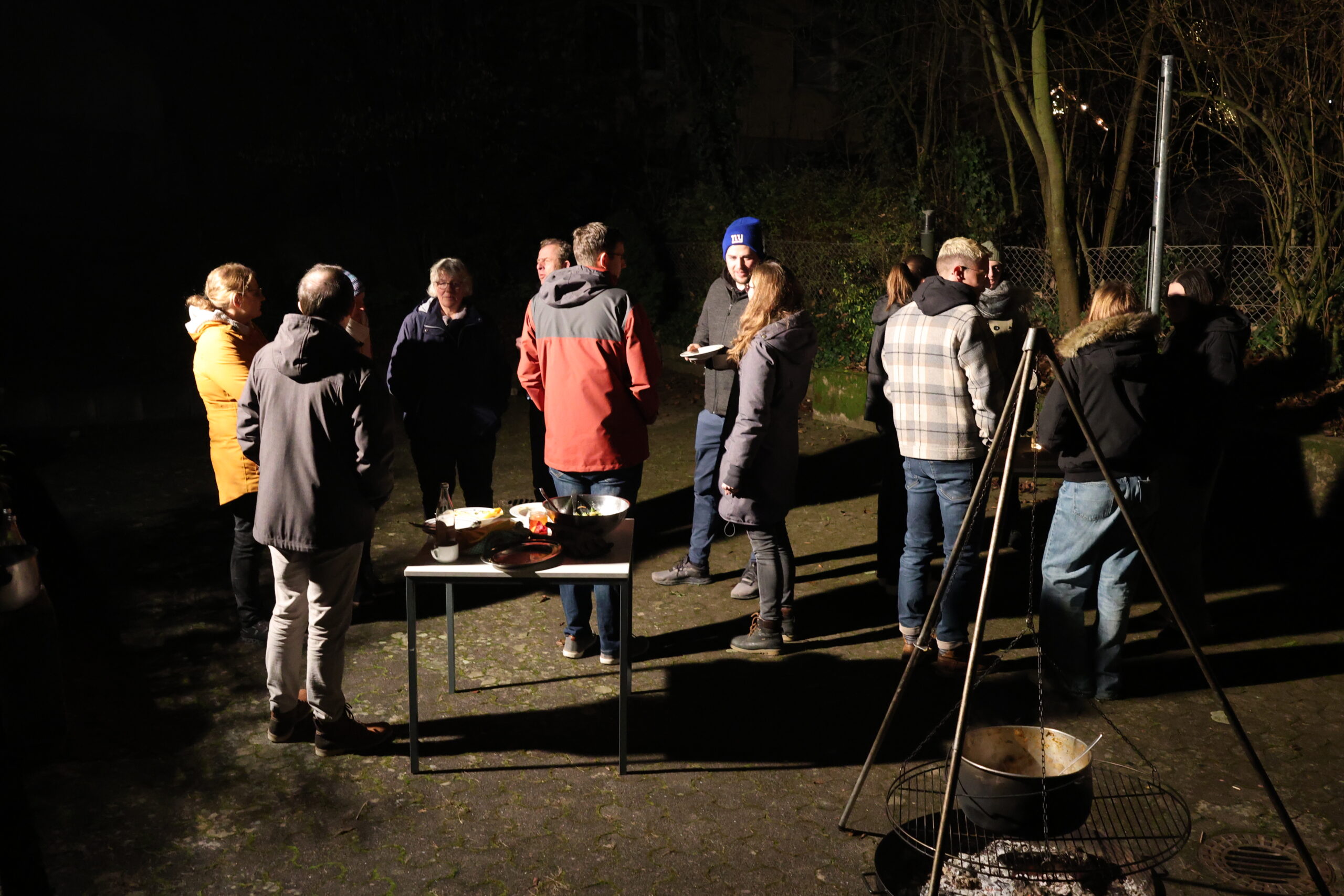 Zwischen den Spielrunden gab es passend zum Motto ganz rustikal draußen vom Feuer einen leckeren Kartoffeleintopf mit Brot. Danke an Felix, Florian und Simon fürs Kochen. Vielen Dank an Paul für die tolle Idee und die Bastelarbeit!