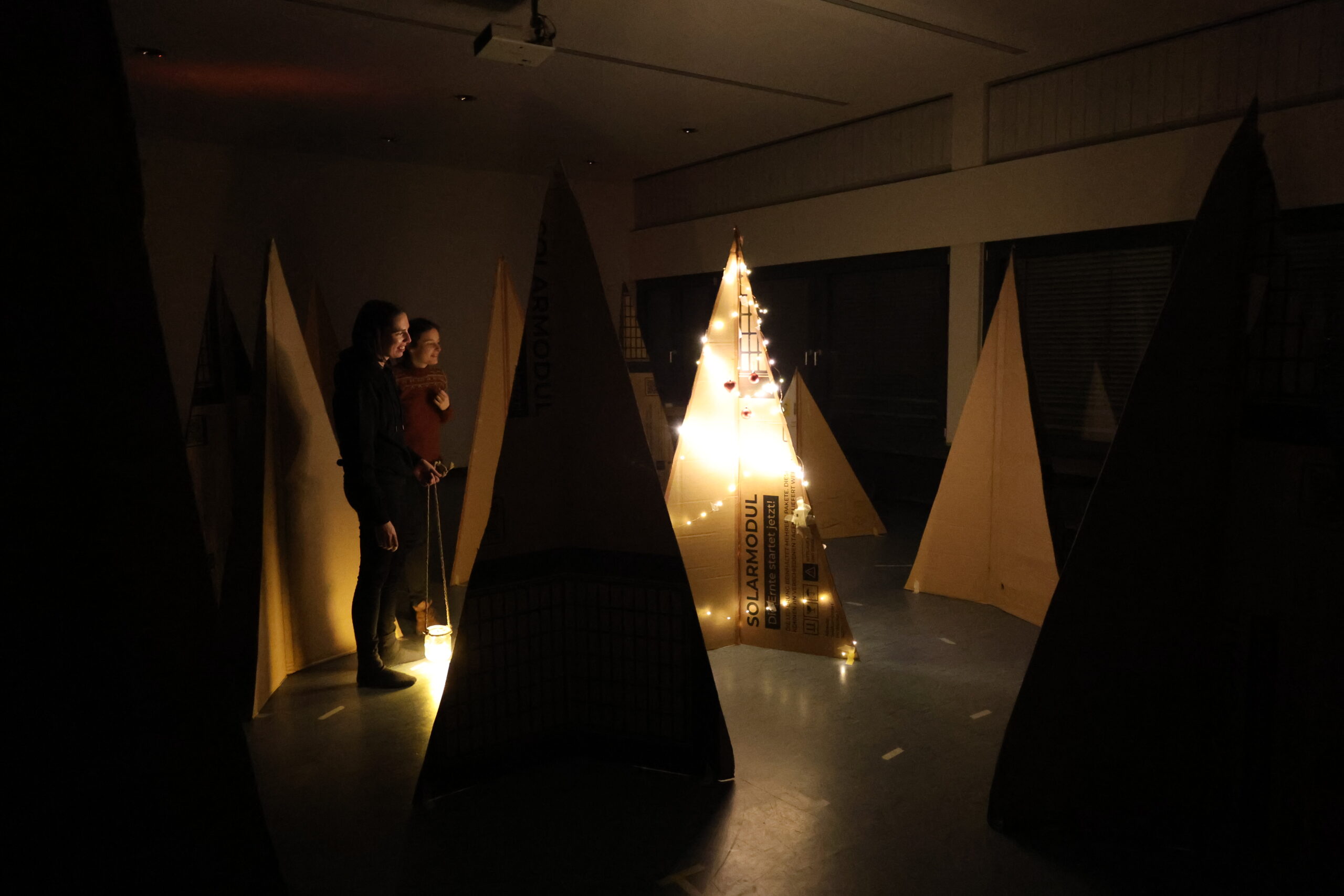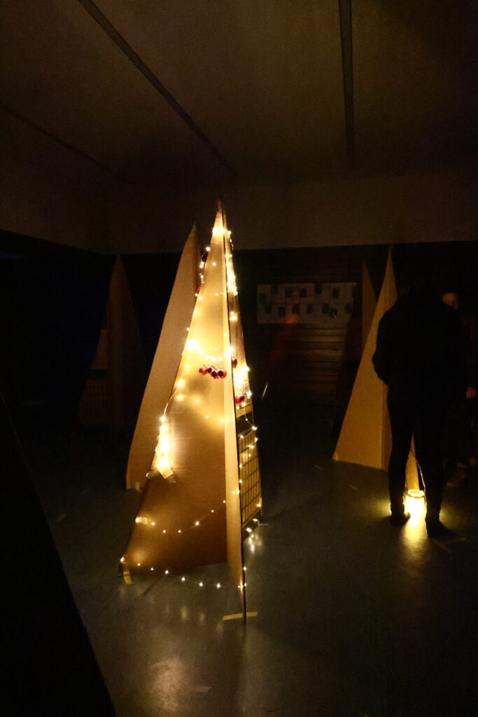 Die Weihnachtsfeiern im ejwo sind schon seit einigen Jahren mehr als Punsch und Lebkuchen – unsere Weihnachtsfeiern sind legendäre Mottofeiern mit kreativen Spiel- oder Beschäftigungsangeboten. So war auch dieses Jahr keine Ausnahme: Der Saal des Gemeindehauses verwandelte sich in einen Wichtelwald. Dort galt es dann in einem Spiel mit Schatten und Licht auf Basis des Kinderspiels „Waldschattenspiel“ sich hinter Papp-Bäumen zu verstecken, andere Wichtel zu befreien und einen Baum zu schmücken.