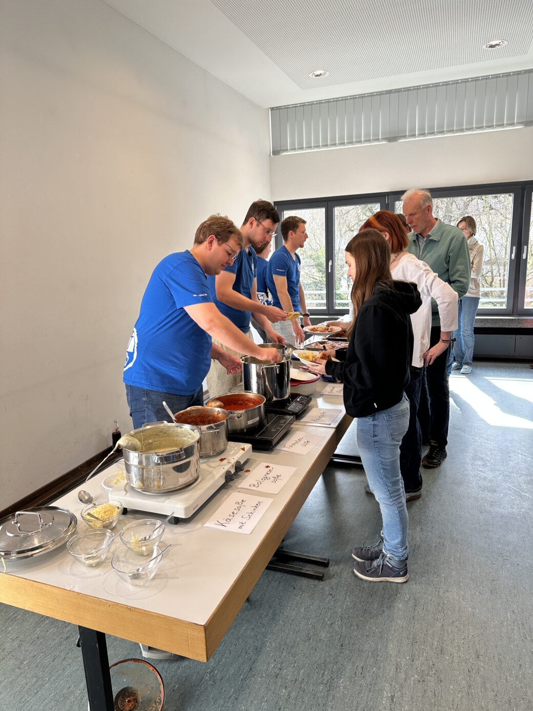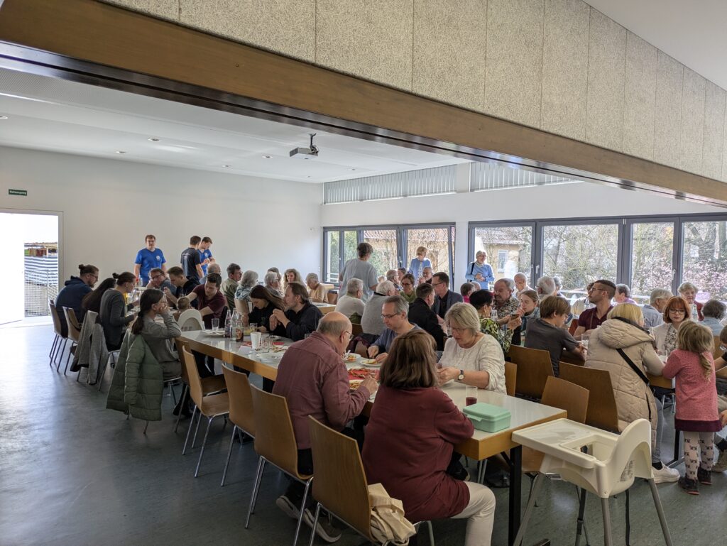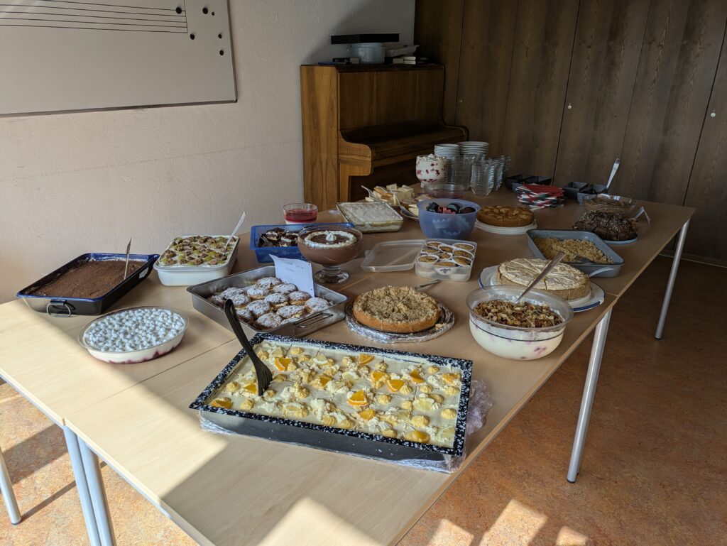 Dieses Jahr am Wahlsonntag und dem internationalen Frauentag, erwartete das Pastafest wie gewohnt mit vielen leckeren Pastasaucen und -sorten, Lasagnen für jeden Geschmack und einem mediterranen Vorspeisenbuffet seiner hoffentlichen hungrigen Gäste. Diese kamen nach dem Familiengottesdienst in der Bartholomäuskirche zahlreich, sodass das Gemeindehaus gegen 12 Uhr gut besucht war – dank des milden Wetter konnte man sein Pastagerichte auch draußen genießen, sodass es genug Plätze für alle gab. Gegen später wurde dann endlich auch das Kuchen- und Dessertbuffet eröffnet, worauf sich viele Gäste immer besondern freuen. Vielen Dank den zahlreichen Helfern und Helferinnen, die Soßen, Lasagnen und Nudeln gekocht, Salate und Nachtische gemacht, aufgebaut, Essen ausgegeben, kleine Gäste bespaßt, gespült und abgebaut haben!