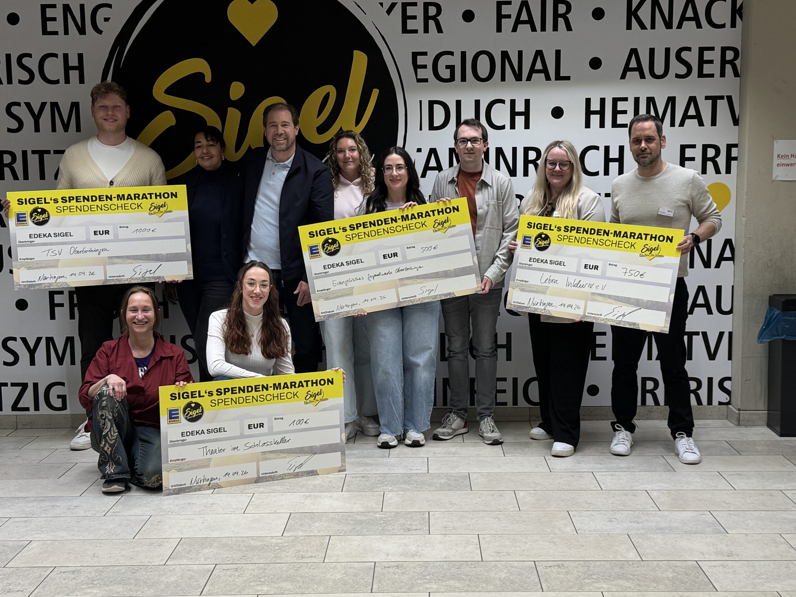 Am 14.4. fand die offizielle Spendenübergabe des Spenden-Marathons von Edeka Sigel statt, an welcher Peter und Anke vom Vorstand teilnahmen. Zwei Wochen lang konnten Kunden im Edeka-Markt in Oberboihingen an vier Spendensäulen mit Jetons, die für einen bestimmten Einkaufswert vergeben wurden, für mehrere Organisationen abstimmten. Wir haben den dritten Platz belegt und konnten über 500 € füs unsere Aufgaben in der ev. Kinder- und Jugendarbeit freuen!